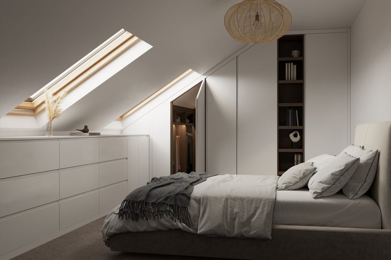 We custom design our Attic & Dormer wardrobes to make the most of those challenging spaces in your home. Whether you have a sloping ceiling or limited headroom, our wardrobes are crafted to utilise every inch of available space. With clever storage solutions and customisable features, our wardrobes provide a practical and stylish storage solution for your attic or dormer.
